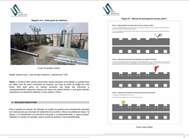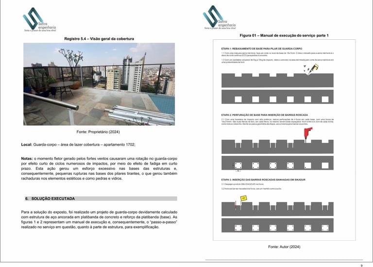 Solução completa monitorada de projeto e execução de guarda-corpo danificado pela ação do vento.